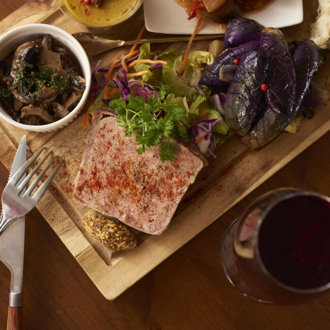 引き締まった身が特徴の、生後一年以上の羊肉を使用。ローズマリーとバターで塊肉の表面を焼きながらしっかりと旨味を閉じ込め、さらにオーブンでお肉がロゼ色になる絶妙な火入れ加減で丁寧に焼き上げています。粒状のパスタ〝クスクス〟と野菜の煮込み料理〝ラタトゥイユ〟とご一緒にお召し上がりください。